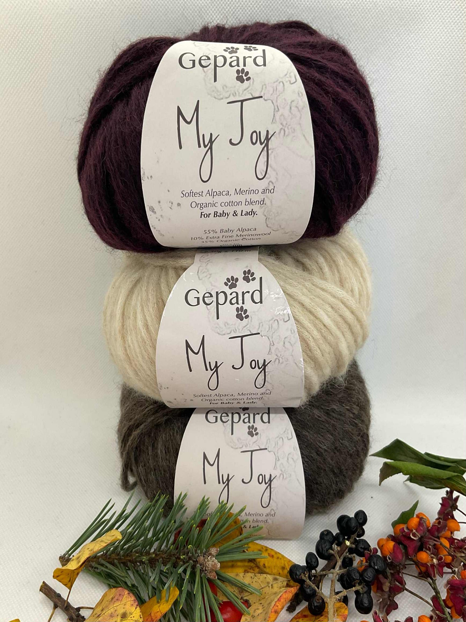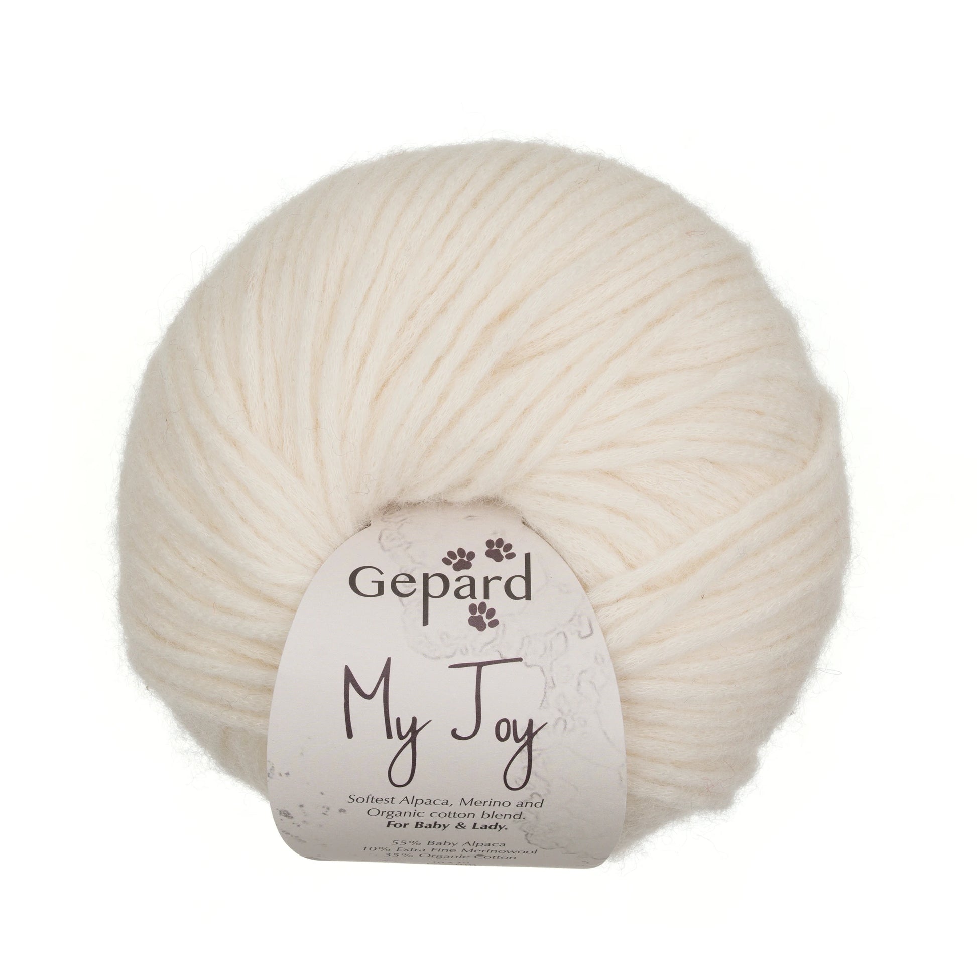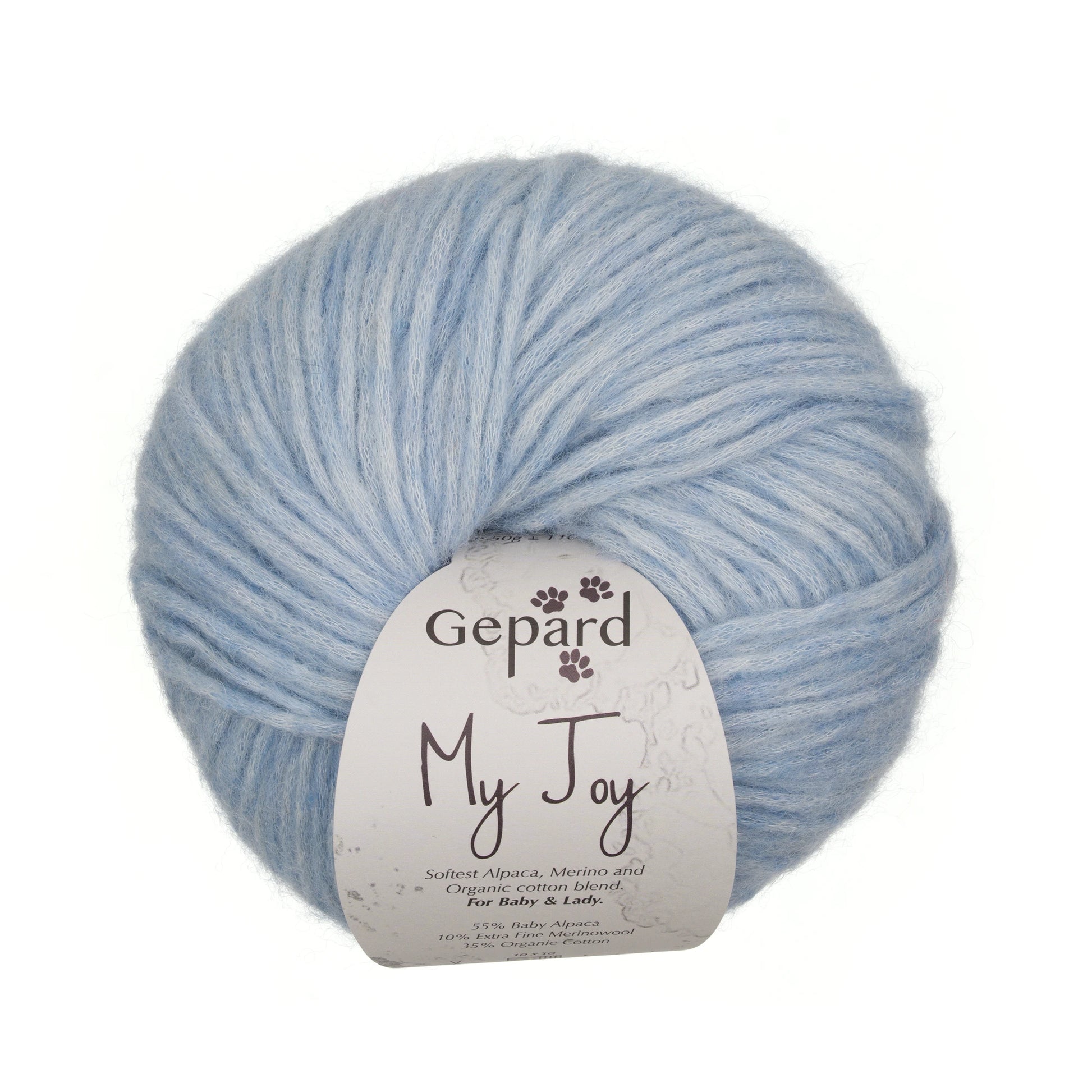 Za razliko od Puno je My Joy narejen iz 100 % naravnih materialov. Ima nekoliko težji padec v pleteni tkanini in ga je najbolje plesti z iglami, ki so približno eno številko manjše od tistih, ki bi jih uporabili za Puno. My Joy je idealen za vse, ki želijo svojemu pletenju dodati kanček bombaža – s čimer je končni izdelek manj topel, a še vedno izjemno mehak in udoben.